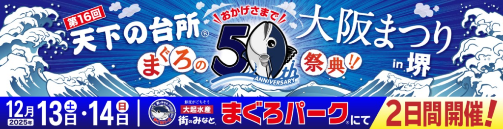 2025年12月13日~14日 まぐろパーク(大阪府堺市)にて『第16回 天下の台所 大阪まつり in 堺』に出店します